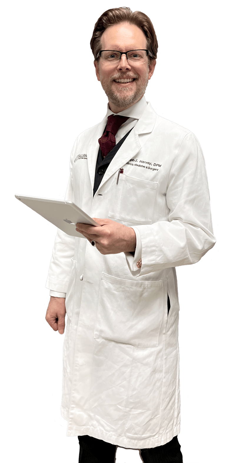 Joseph Harvey, DPM, is passionately committed to an integrative approach to podiatry that balances the latest medical techniques with compassionate care.